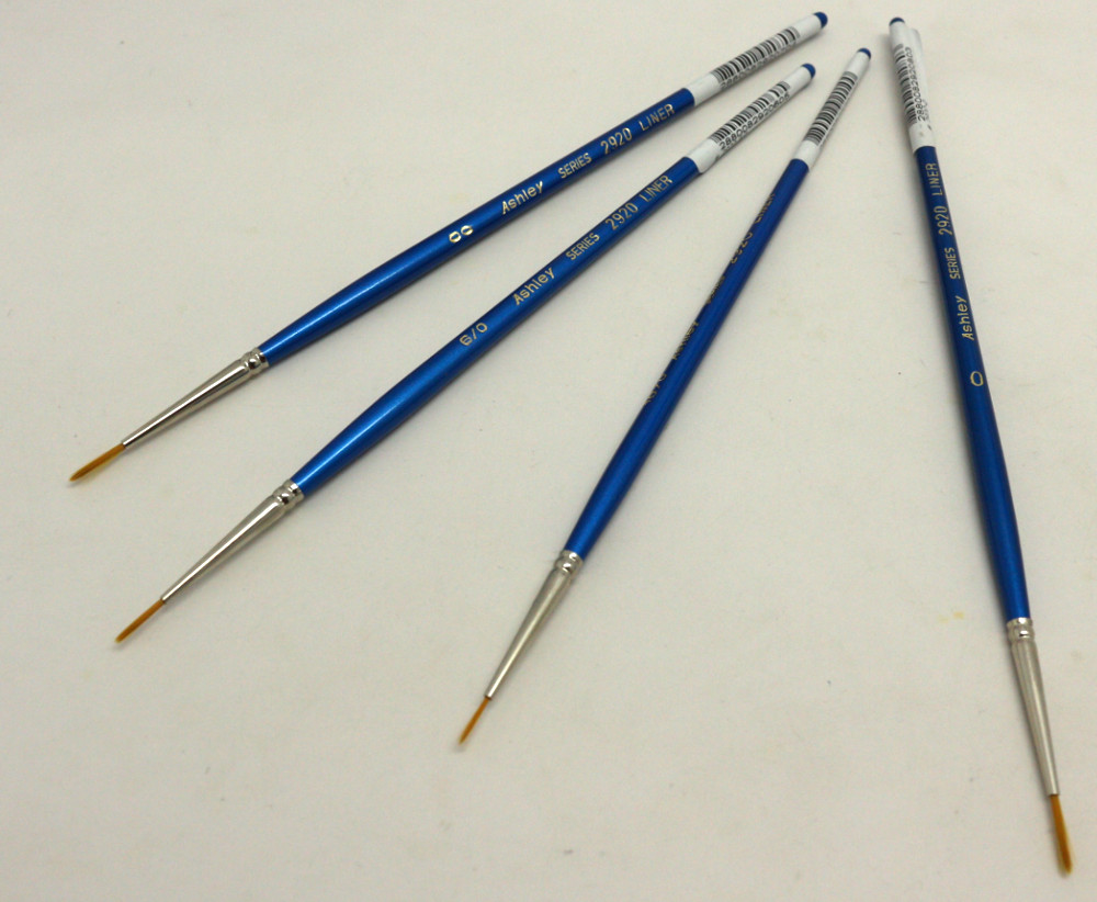 Liner brushes have thin, narrow bristles that come to a sharp point. Use liners for painting details and fine, thin lines that are straight or curvy. Liner brushes are available in short, medium and long lengths. Short-bristled liner hairs don't spread, so they are ideal for painting detailed areas that require a lot of control. Medium-bristled liner hairs spread a small amount, so they are versatile and work for most projects. Long-bristled liner hairs bend and spread easily, so use them for painting long, continuous lines and handwriting.