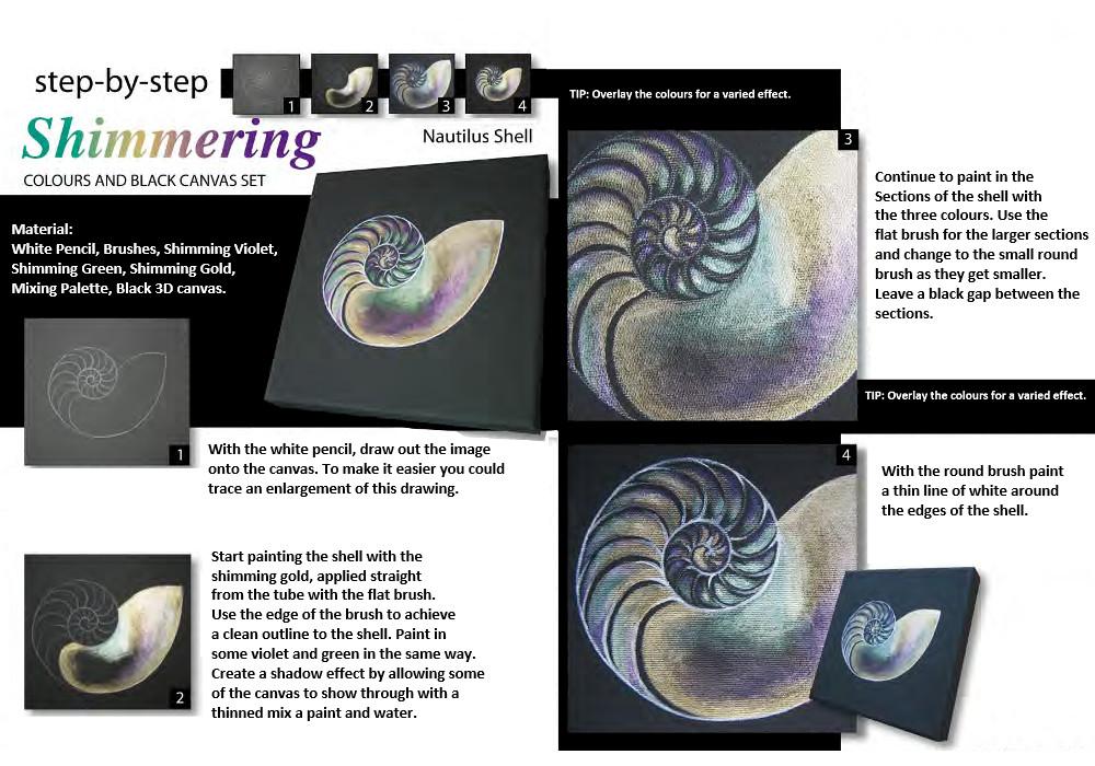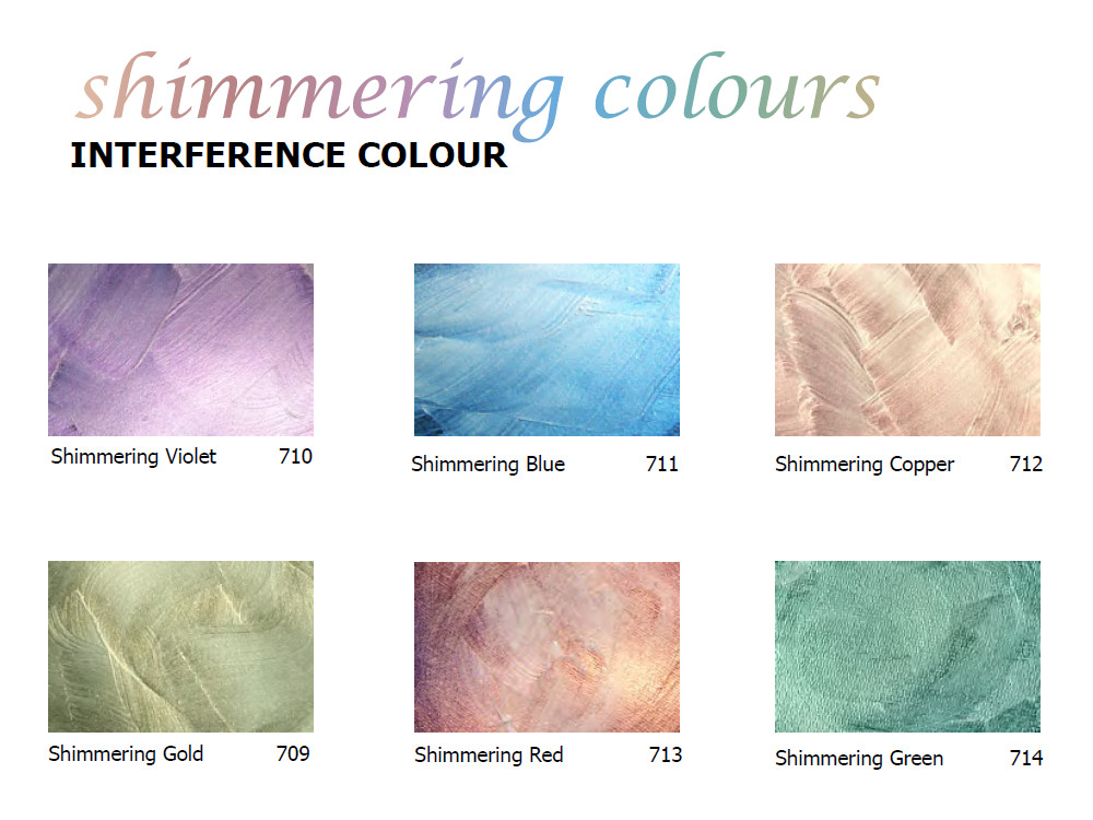When used straight from the tube and applied to a black surface, they produce a magical shimmering, metallic, transparent lustre. The most dramatic effects are on black, where colour shows with electric intensity.