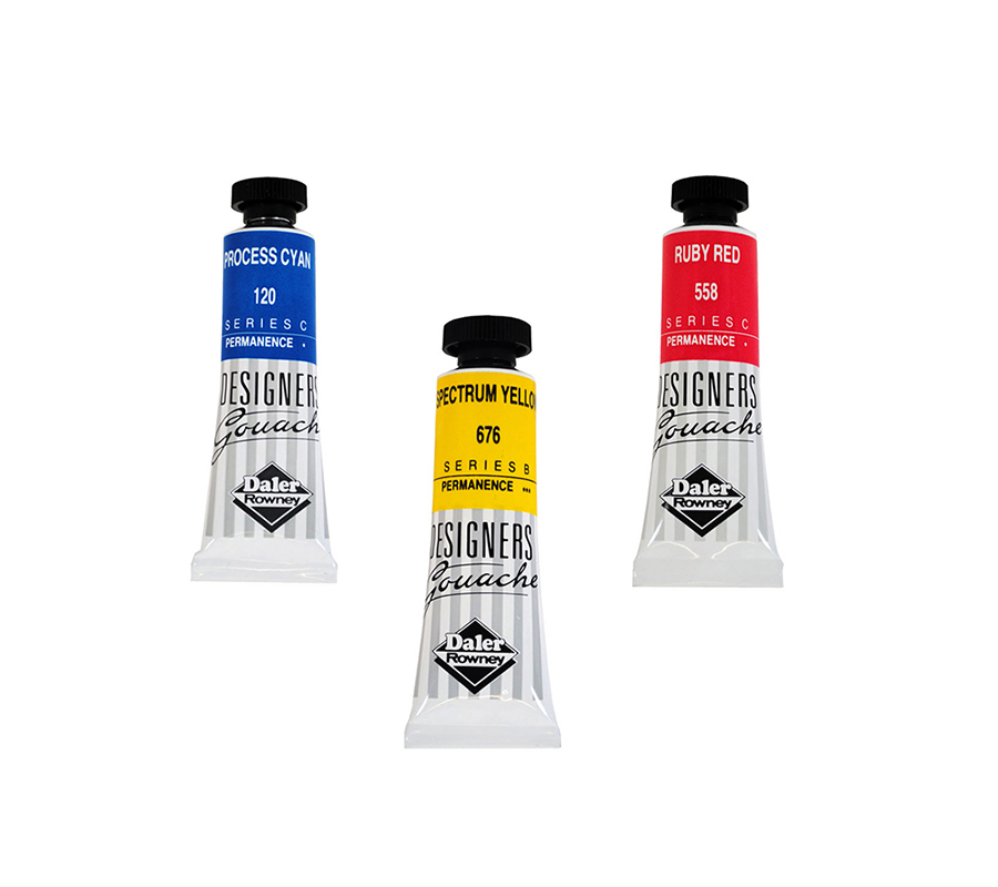 The high-quality pigments and reflective qualities of the fine calcium carbonate specified by Daler-Rowney ensure that Designers Gouache retains its pure bright colour across all the glowing shades in the range.