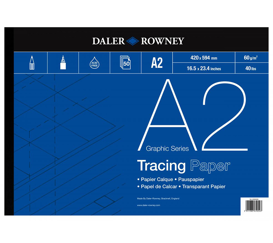 Daler-Rowney’s Tracing Paper is highly transparent and offers superb erasability with both erasers and blades.It is designed for use with all types of pencil, drawing pens and inks. A must for designers and architects.
