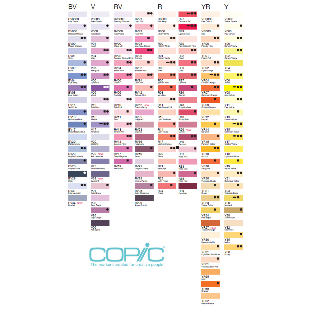 One bottle of Various ink will approximately refill a Ciao marker 13 times, Sketch 8-10 times, Copic 7-9 times or Wide markers 5-6 times. Match the Various Ink color number with your marker color number.