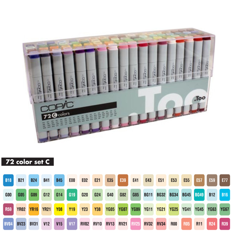 Packaged in a clear plastic case, a Copic set is the ideal way to begin or add to a marker collection.