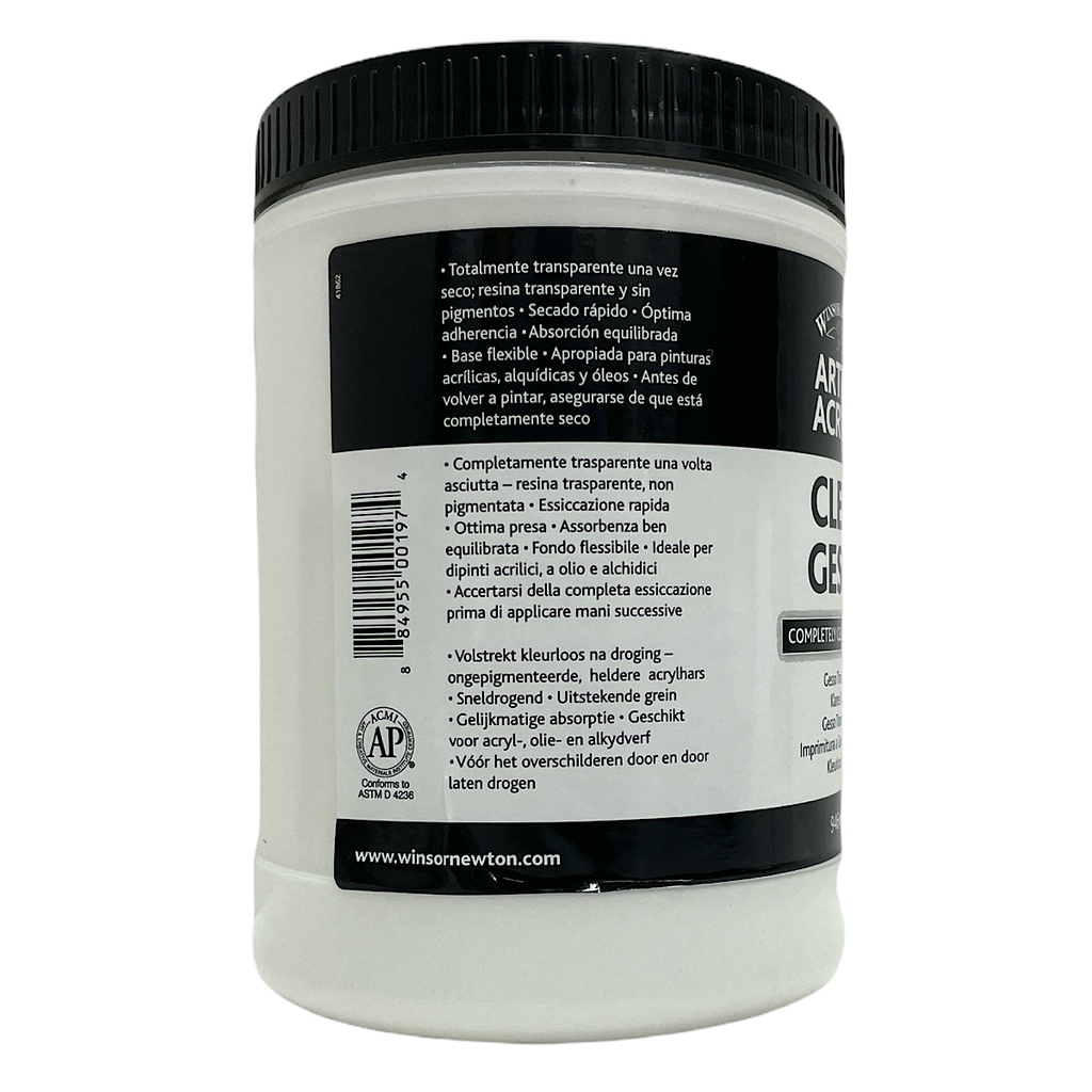 Clear Gesso - Made from unpigmented clear resin which provides excellent tooth but dries completely clear. You can make your own coloured gesso primers by the addition of acrylic colours. It is also suitable for making a pastel surface on paper.