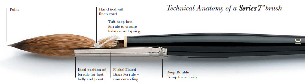 Series 7 is manufactured from only the finest pure Kolinsky Sable hair, in rust-proof, seamless nickel plated ferrules with black polished handles.