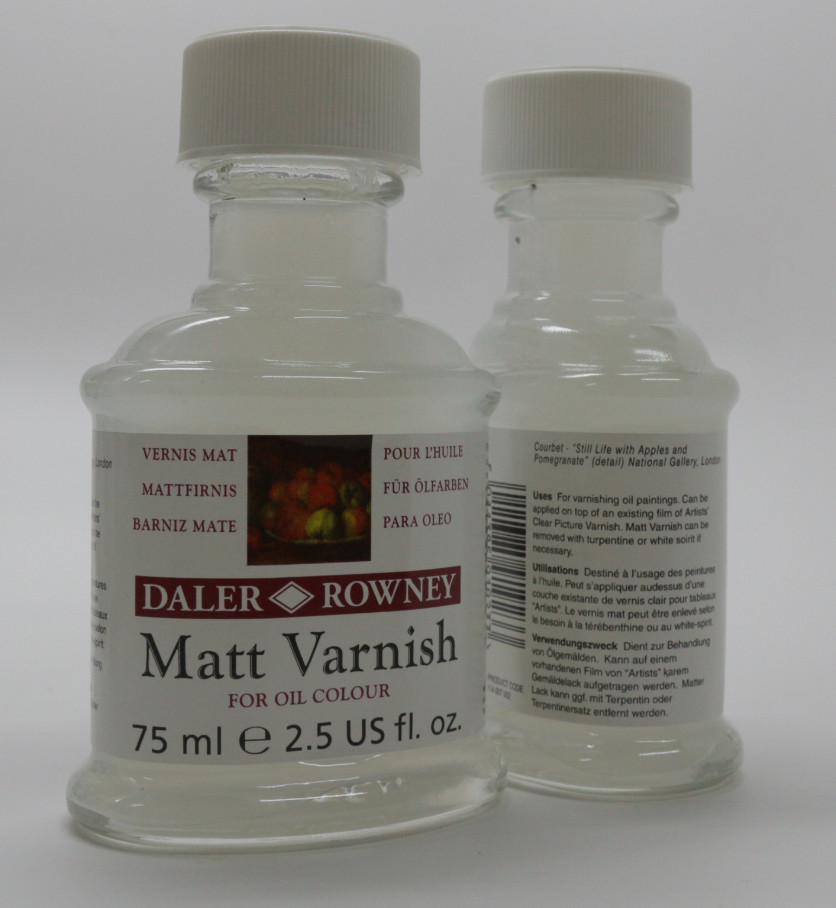 A removable varnish that dries to a matt finish. It can be mixed with Artist’s Clear Picture Varnish to give a range of semi-gloss surfaces. It is non-yellowing. Removable with turpentine or white spirit, and can be used to varnish oils or acrylics.
