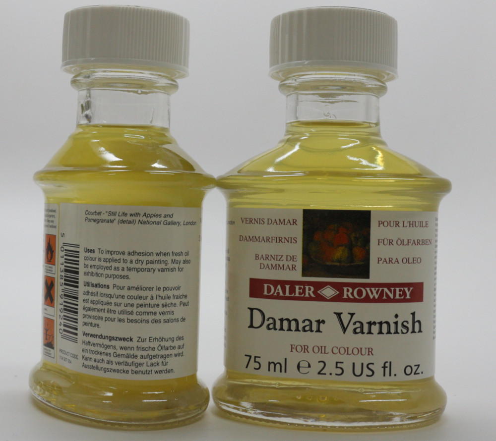 A removable picture varnish. Will give a low gloss when applied thinly. Damar dries hard and clear within a few hours. Removable with turpentine or white spirit.