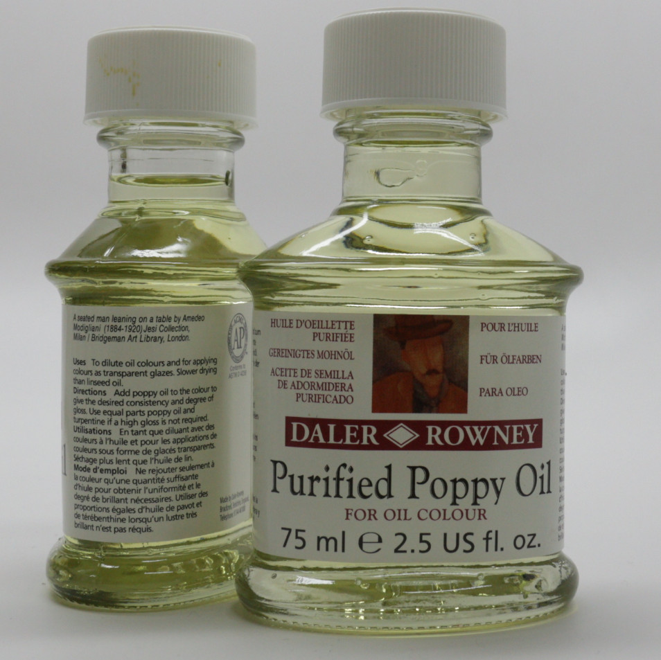 A clear oil medium to mix with and reduce light colours. Less inclined to yellow than Linseed Oil, but slower drying. Enhances gloss and flow, but too high a proportion prevents the colour from thorough drying.